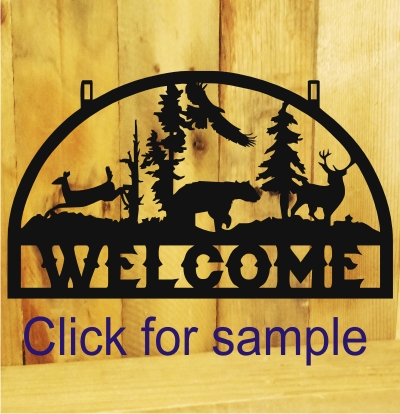 Replace the bottom text with a family name, address or whatever you prefer.  (If custom text is not specified, the text "WELCOME" will be cut in place.)
